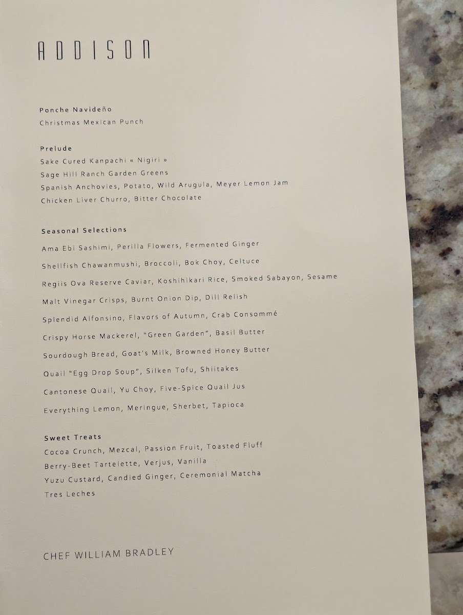 In conclusion, Addison's menu is a testament to the art of fine dining, offering a comprehensive range of beverages that cater to all tastes and preferences. Whether you're enjoying a glass of premium wine or savoring a handcrafted non-alcoholic drink, the selection at Addison enhances every moment, making it a standout destination in San Diego.